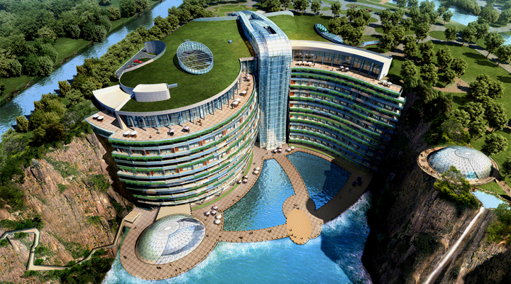 建造這樣一個上下高度落差巨大的深坑酒店是一個極其復(fù)雜、浩大的工程,因其“深度”也將同時帶來許多的建筑技術(shù)難題。