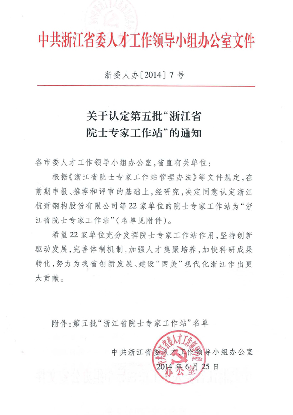 近日,中共浙江省委人才工作領(lǐng)導(dǎo)小組根據(jù)《浙江省院士專家專家工作站管理辦法》等文件,研究決定,同意認(rèn)定浙江杭蕭鋼構(gòu)股份有限公司等22家單位的院士專家工作站為“浙江省院士專家工作站”。