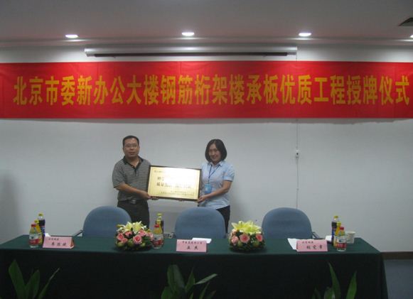 ??? 儀式最后,史志強(qiáng)先生和王金蘭女士分別接受北京市委基建辦和北京城建集團(tuán)的頒獎。