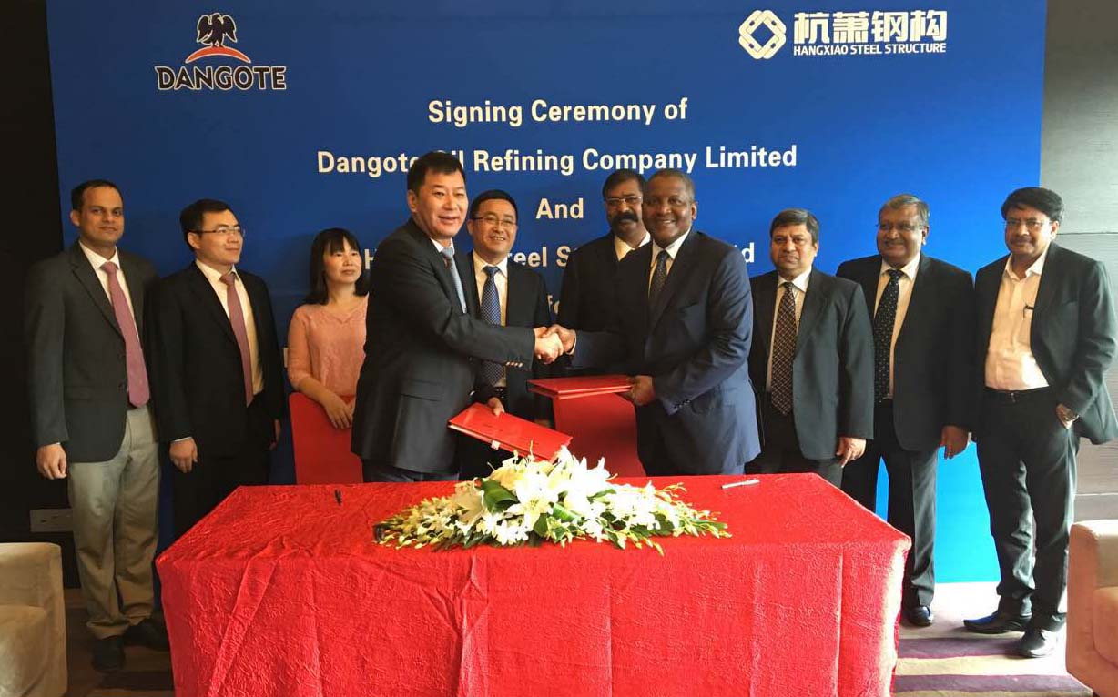 2016年9月1日,杭蕭鋼構(gòu)股份有限公司與尼日利亞制造業(yè)巨頭丹格特集團(tuán)(Dangote?Group)在北京簽訂了1.12億美元煉油廠鋼結(jié)構(gòu)供貨合同。