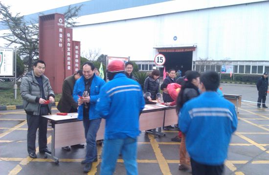 ??? 2月17日,新年第一天上班。當(dāng)天上午,公司副總工程師黃振華、工藝副總楊政、制造運(yùn)營(yíng)總監(jiān)覃波、總經(jīng)理助理蔡璐璐、法務(wù)部經(jīng)理孫國(guó)彬、人力資源部經(jīng)理張超、行政安全部經(jīng)理石鐵君等人頂著寒風(fēng)駐足廠區(qū)門(mén)口,熱烈歡迎員工們返廠,同時(shí)發(fā)放新年紅包,這是新的一年、新的開(kāi)始、也是新的祝福和期望。