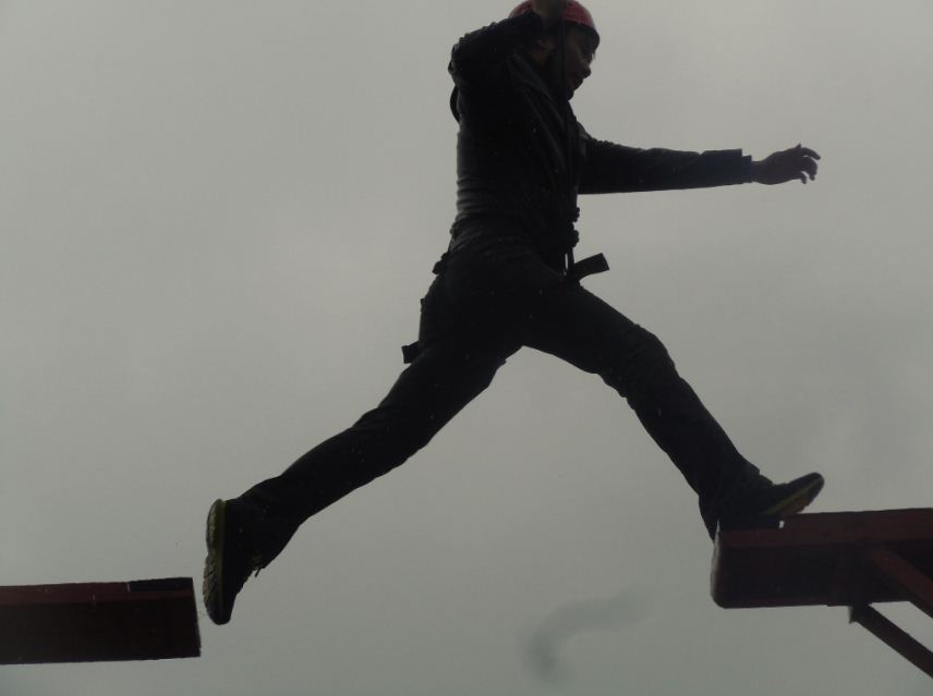 在這個項目中,我們自我挑戰(zhàn)都成功,雖有幾個隊員開始很害怕,不過在隊友和老師的鼓勵下還是勇敢的躍過,再躍回來,且在別的隊友挑戰(zhàn)成功后,隊友受到團隊內部的相互激勵和鼓舞慶賀。自我挑戰(zhàn)不是適可而止、差不多就行,而是要有突破自我欲望,要主動提出挑戰(zhàn)更遠的距離,在團隊中我們更應該具有精益求精、不斷突破、敢于挑戰(zhàn)的精神理念。