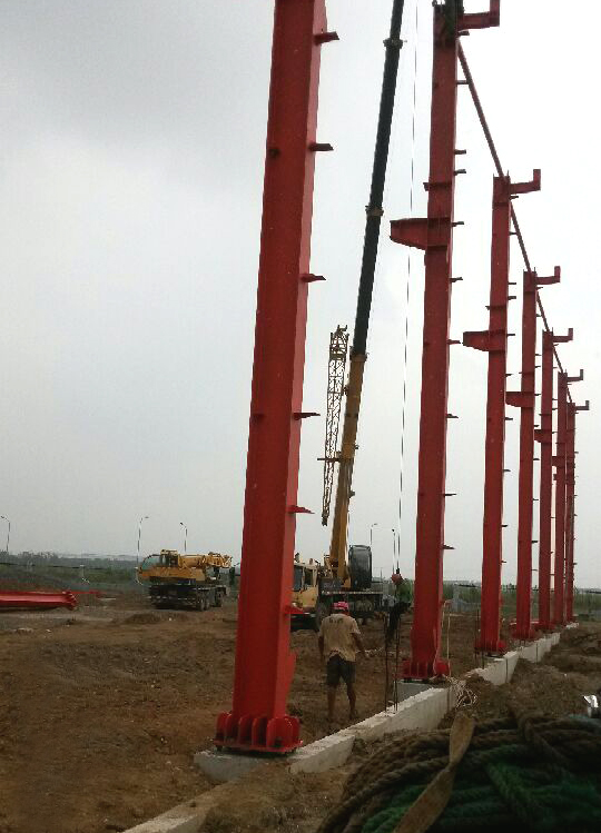 ??? 8月22日上午8點(diǎn)18分,伴隨著喜慶的鞭炮聲,由山東杭蕭鋼構(gòu)有限公司(以下簡(jiǎn)稱(chēng)“山東杭蕭”)承攬的青島中集冷藏箱制造有限公司廠區(qū)遷建鋼結(jié)構(gòu)工程順利完成了首根鋼柱的吊裝工作,由此,青島中集遷建項(xiàng)目順利進(jìn)入地上鋼結(jié)構(gòu)施工階段。