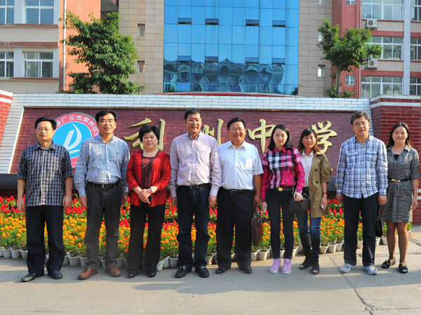 廣元市教育局副局長向聰蘭(左三)杭蕭鋼構(gòu)董事長單銀木(左四)利州中學(xué)校長蘇永生(左五)合影