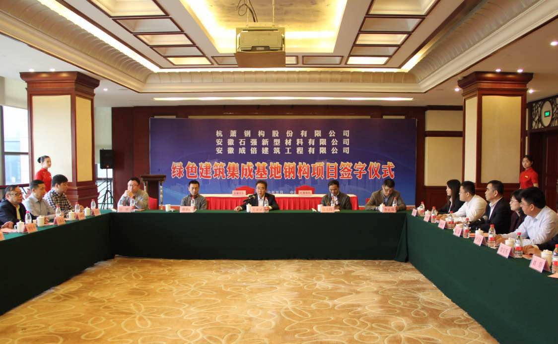 在當?shù)卣嚓P領導的見證下,協(xié)議由安徽石強新型材料有限公司董事長李作平與杭蕭鋼構副總裁壽林平共同簽署。合肥市經(jīng)濟技術開發(fā)區(qū)工委委員、管委會副主任王亞斌,合肥市房地產(chǎn)局主任張大傳,建設發(fā)展局副局長郭景民等領導親臨,安徽石強新型材料有限公司總經(jīng)理黃林成,副總經(jīng)理王軍,副總經(jīng)理張崇鈞,杭蕭鋼構集團副總裁陳瑞,集團總工程師尹衛(wèi)澤等出席簽約儀式。