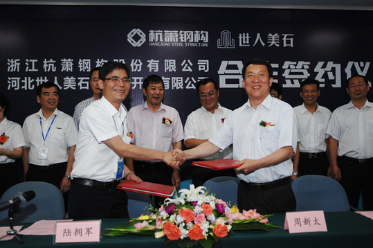 2014年9月10日,《新華網(wǎng)浙江頻道》報(bào)道:《杭蕭鋼構(gòu)實(shí)現(xiàn)鋼結(jié)構(gòu)住宅體系技術(shù)產(chǎn)業(yè)化 杭蕭鋼構(gòu)與河北世人美石簽署合作協(xié)議》。